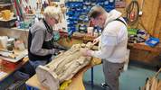 Unser Bildstock mit der Figur des heiligen St. Vinzenz van Paul im Garten des St. Vinzenz am Stadtpark hat ein Makeover nötig: Das Dach war marode und musste runter. Beim genaueren Hinsehen gab’s eine Überraschung – der Sockel ist vom Holzwurm befallen.